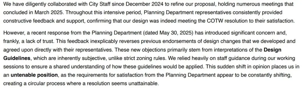 Both these letters, from the developer, were sent to Mayor and Council regarding the plans the City received on 24 June 2025
